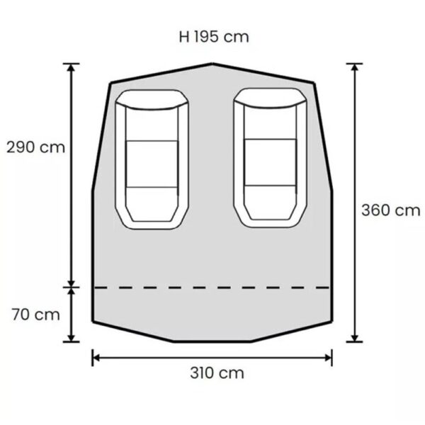 - Ventilația din spate poate fi deschisă din partea interioară a Bivvy