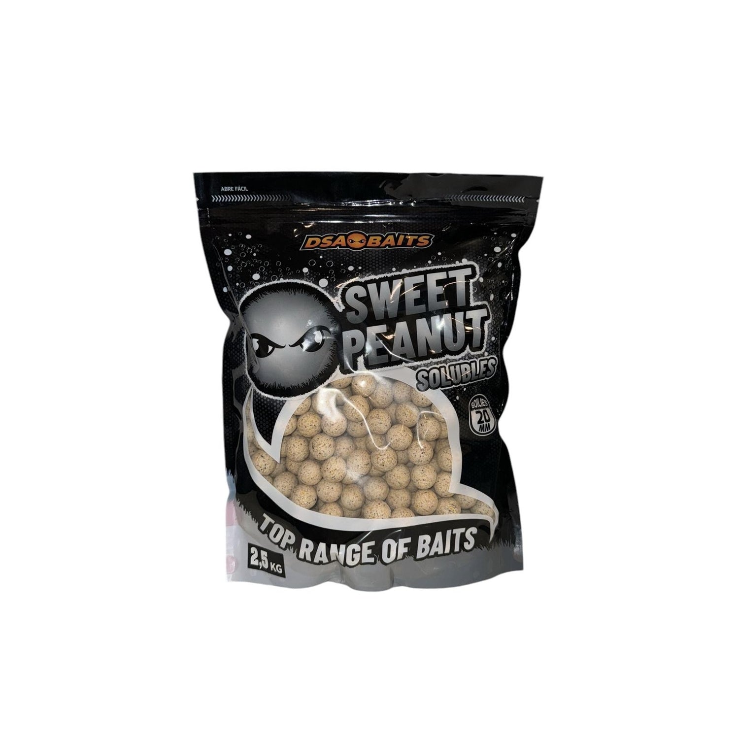 Boilies solubles de la marca DSA Baits, gama Top Range, sabor Sweet Peanut, especial para la pesca de carpfishing.