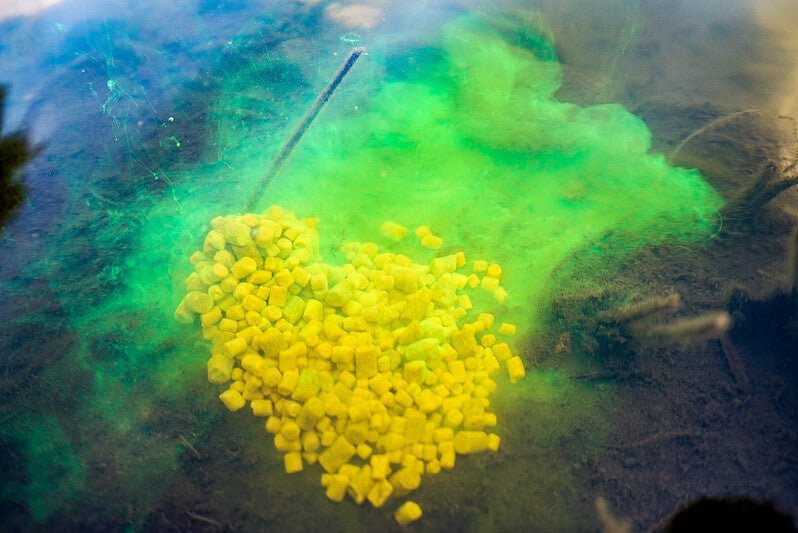 Sticlă de lichid fluorescent cremă de marcă Pro Elite Baits aromă Banană Strawberry la Culoare verde de 150 de mililitri, special pentru carpfishing.