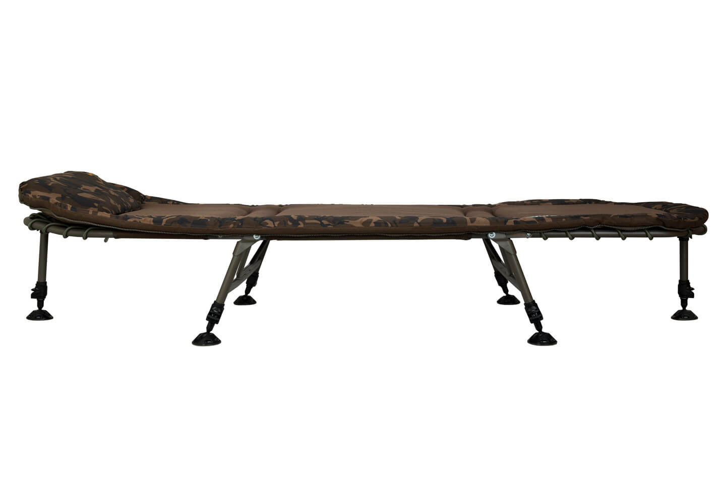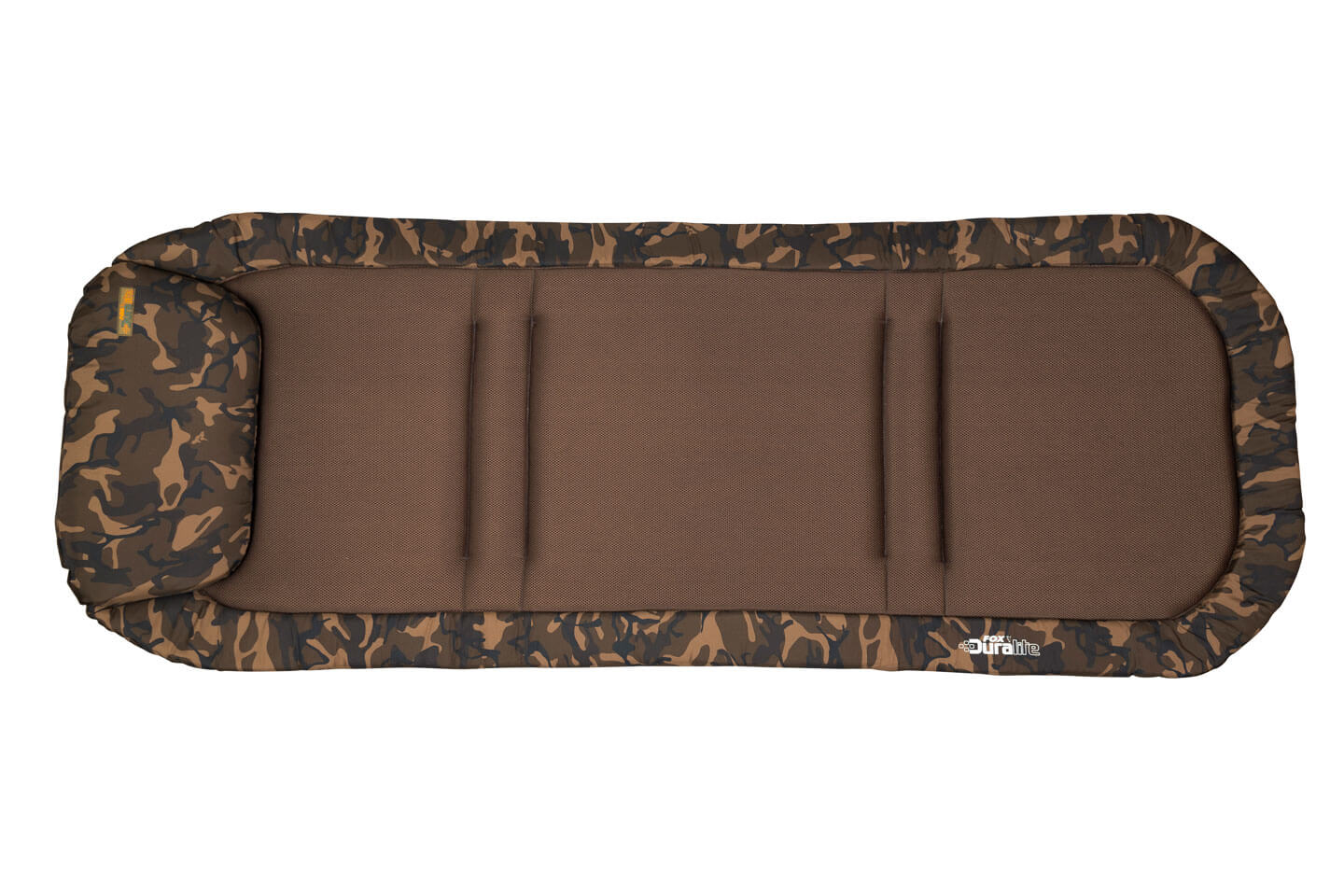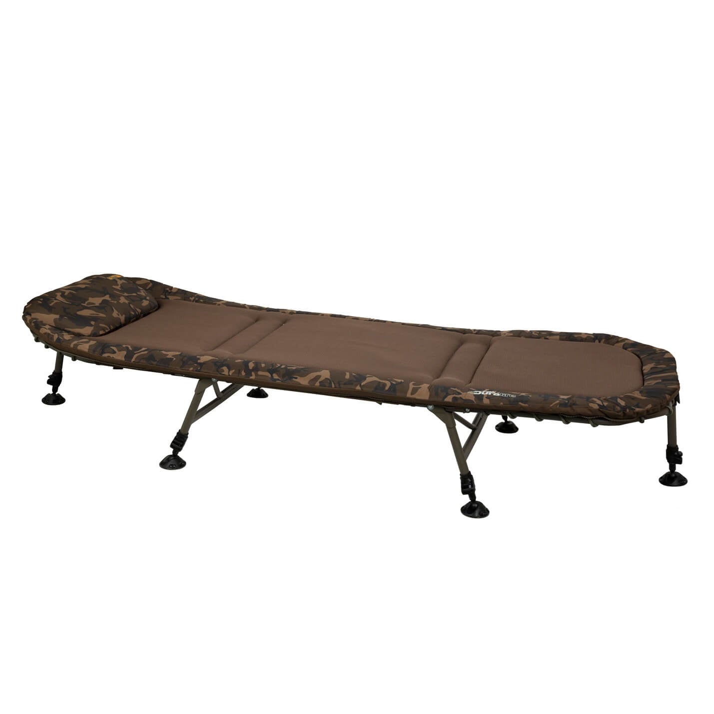 Bed chair a mărcii Fox model Duralite în culoare verde camuflajspecial pentru carpfishing.