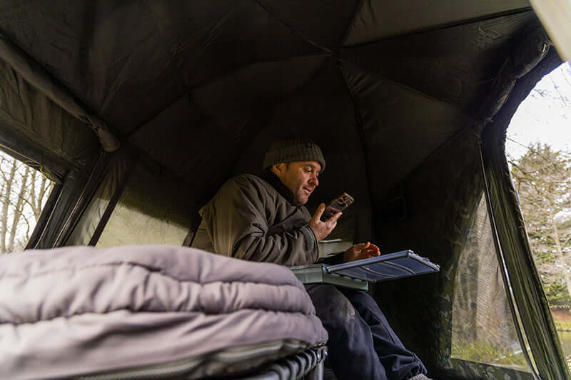Bivvy de marcă Fox, model Frontier X+în special pentru carpfishing.