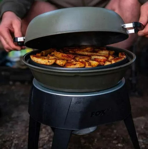 Stație de gătit de marcă Fox, ideală pentru sesiunile de carpfishing. Cu ustensile de gătit pentru a asigura prepararea mâncării din mers.
