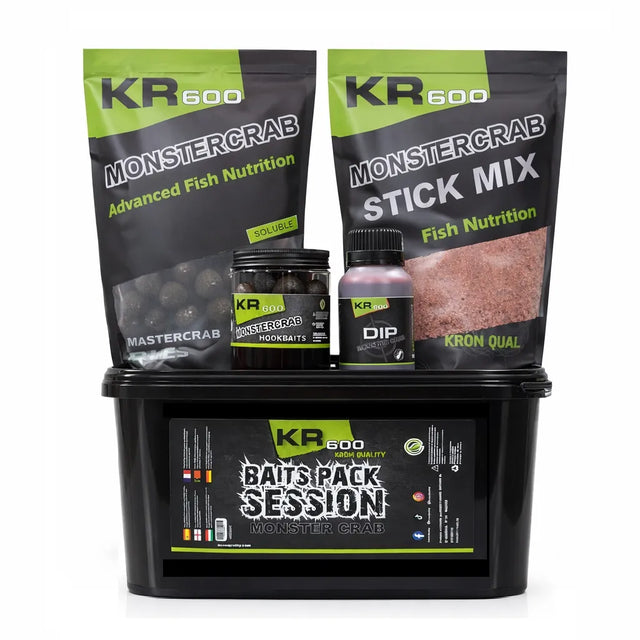 O mulțime de momeli Krom Quality interval KR600 aromă Monster Crab, mai ales pentru pescuitul crapului.