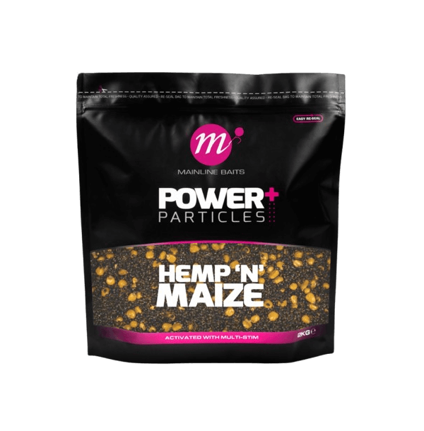 Amestec de semințe de marcă Mainline gamă Power+ cu un gust de Hemp 'N' Maizespecial pentru carpfishing.