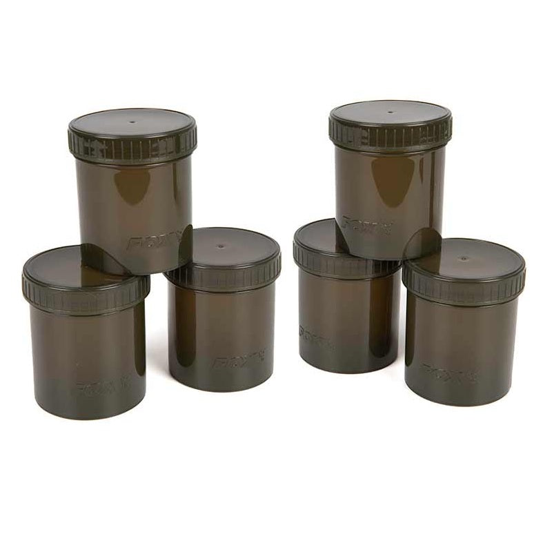 Pachet de 6 borcane pentru momeli de marcă Fox ,model Margini, concepute pentru depozitarea în siguranță a tuturor momelilor cu cârlig, în special pentru carpfishing.