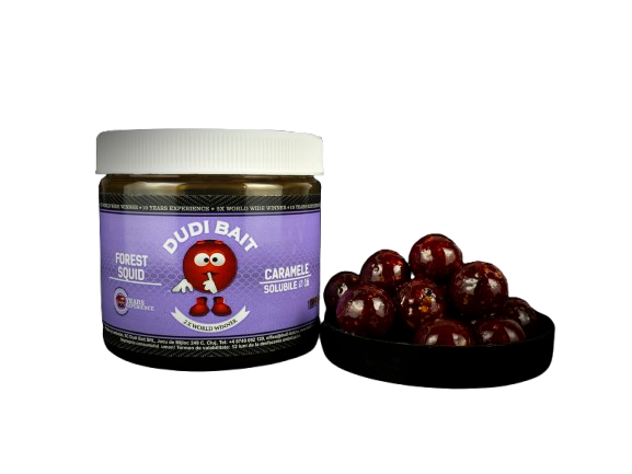 Boilies solubile selectat pentru poziționarea mărcii Dudi Bait de la 16 milimetri gamă Glugged gust pădure de calmarspecial pentru carpfishing.