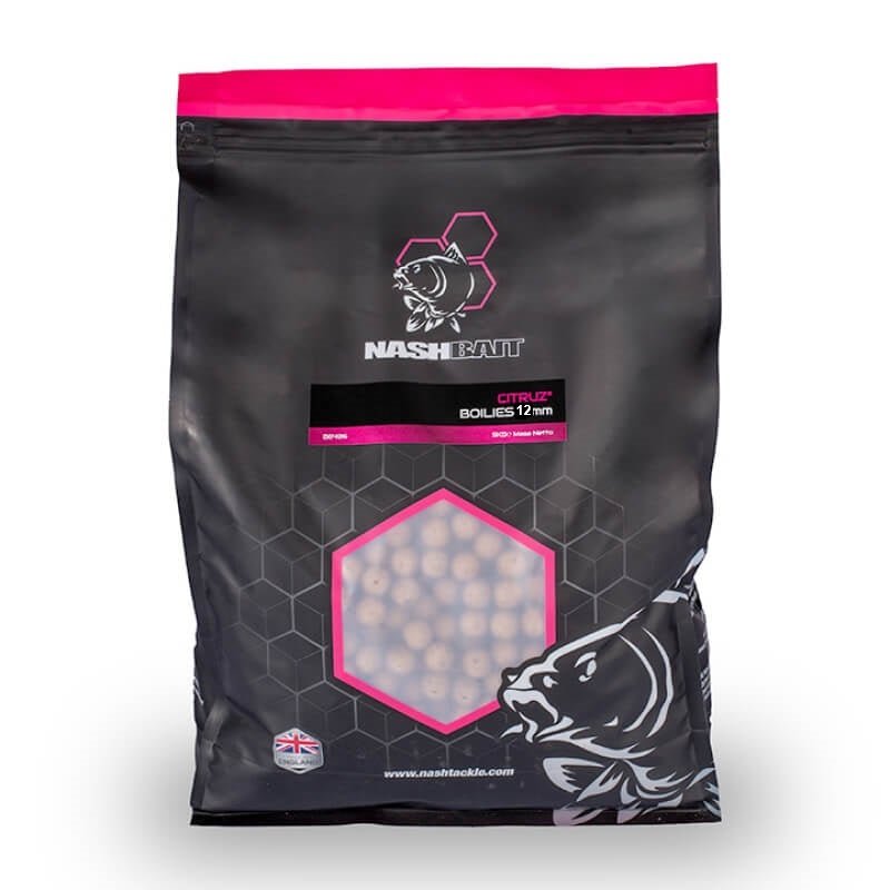 Pungă de 1 kilogram de boilies de marcă Nash aromă Citruz pe Culoare natural 12 milimetri sub formă de momeală alimentară pentru cele patru anotimpuri ale anului, în special pentru carpfishing.