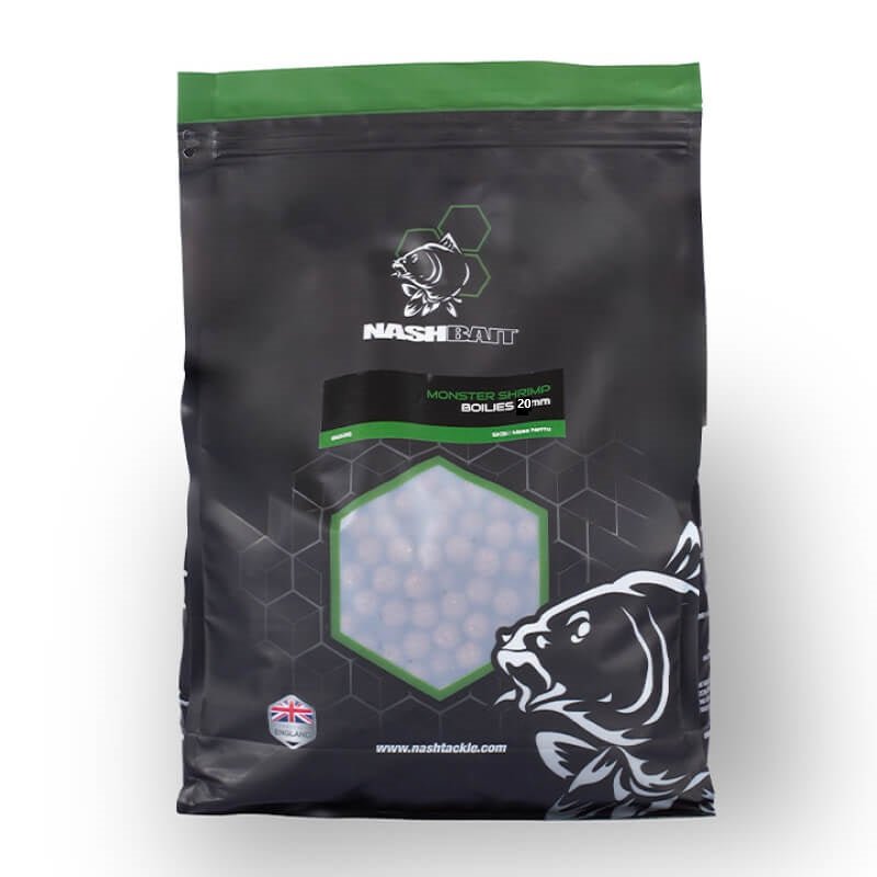 Bursa de valori boilies a mărcii Nash de la marca de 20 de milimetri partea de sus a gamei Monster Shrimp. În special pentru carpfishing.