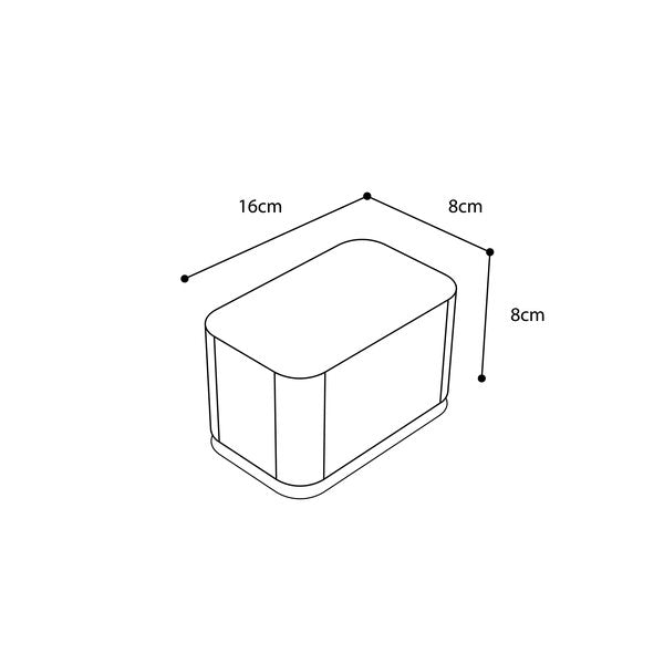 - 8 (înălțime) x 16 (lățime) x 8 cm (adâncime)