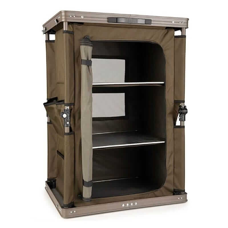 Dulap organizator pentru Bivvy de marcă Fox, ideal pentru depozitarea tuturor tipurilor de materiale în Bivvy sau pentru a-l folosi exclusiv pentru ustensile de bucătărie.