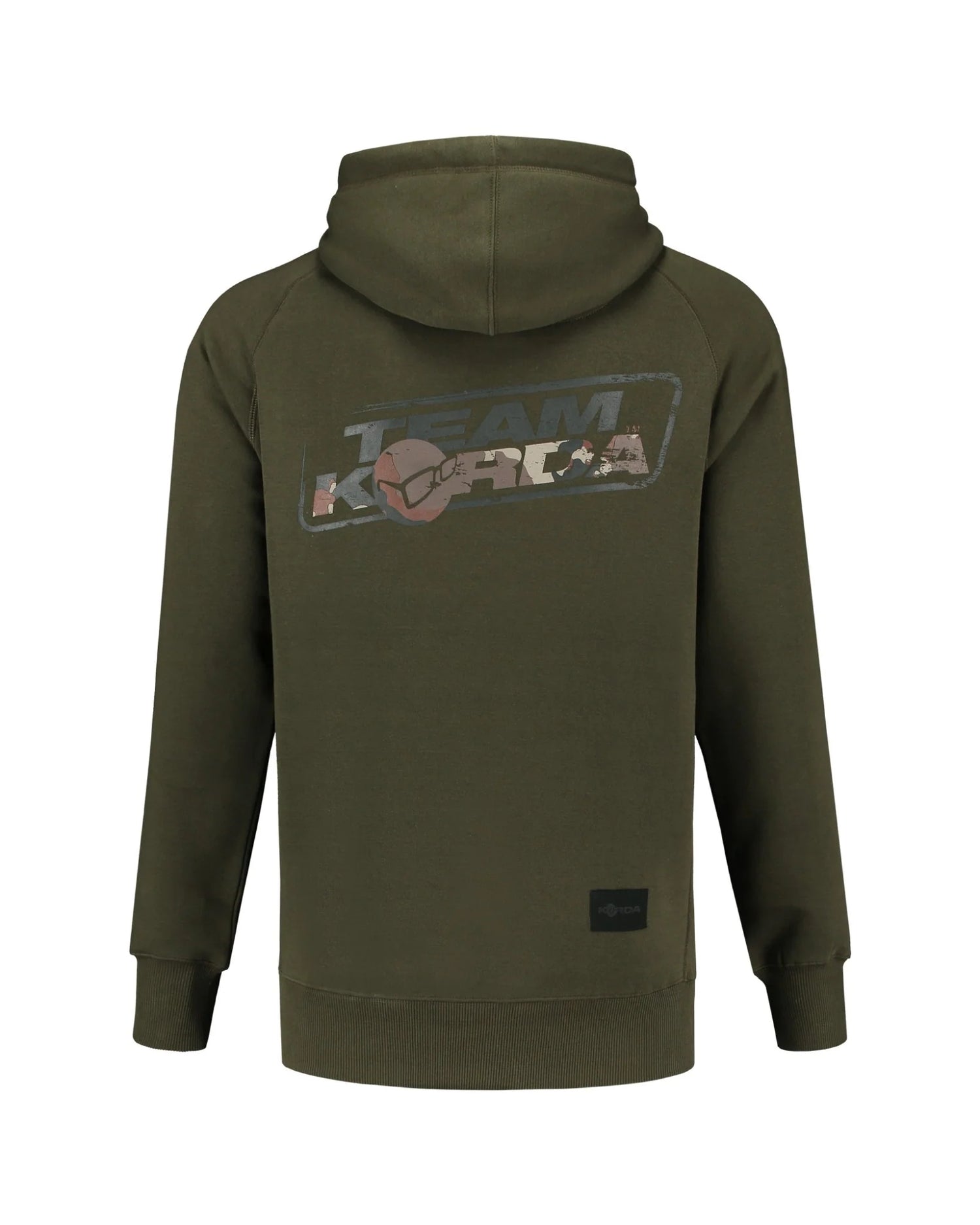 Hanorac cu șapcă de marcă Korda model Kore TK la Culoare verde închisspecial pentru carpfishing.
