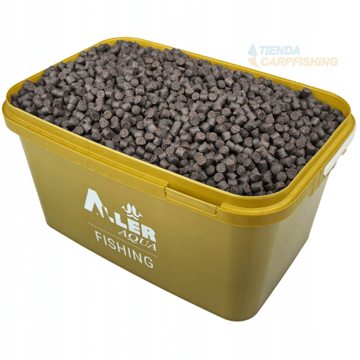 Cubul de pelete al mărcii Aller Aqua, aromă Halibutul negru, Perfect pentru sesiunile tale de pescuit.
