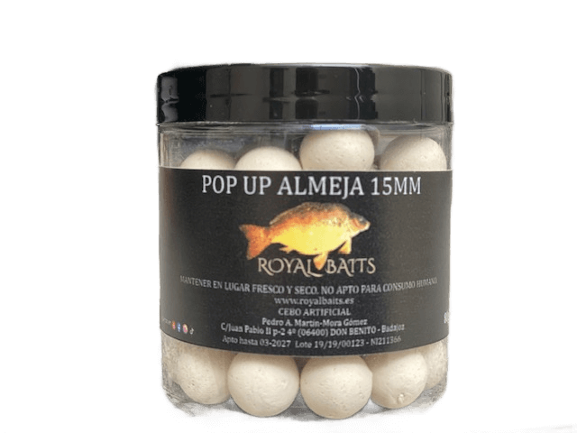 Pop Up flotant de marcă Royal Baits 15 milimetri aromă de scoici în Culoare alb, special pentru carpfishing.