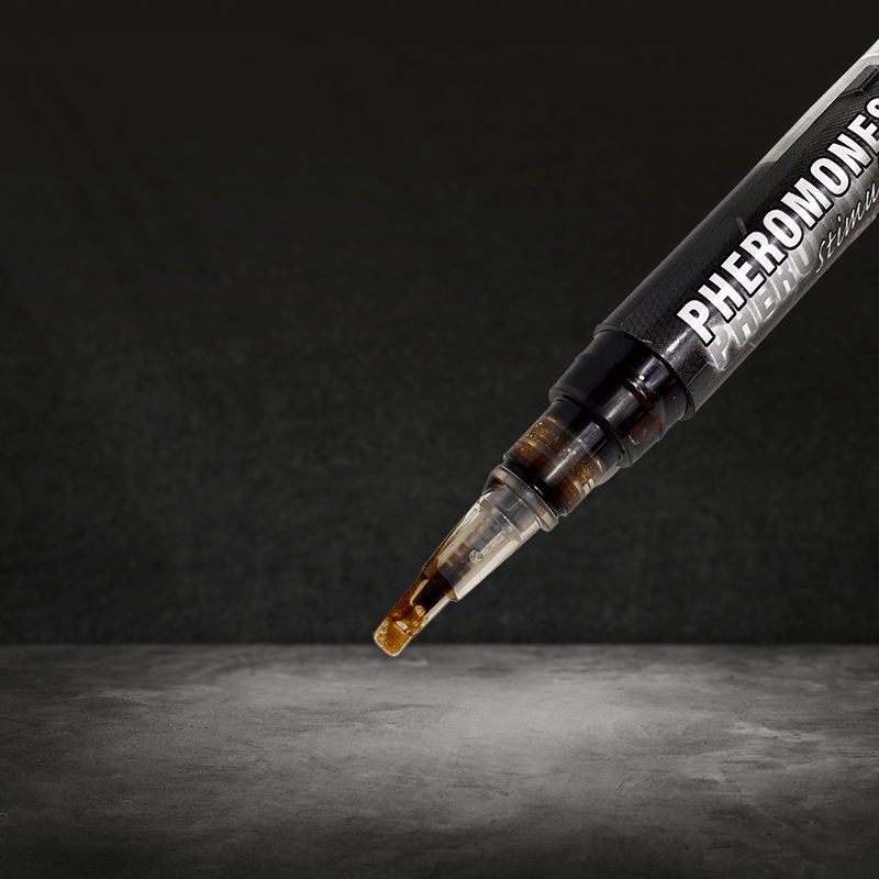 - Acești feromoni de 5 ml sunt prezentați cu un aplicator convenabil cu stilou și cap de limbă de pisică, care îl face foarte ușor de aplicat pe orice momeală.