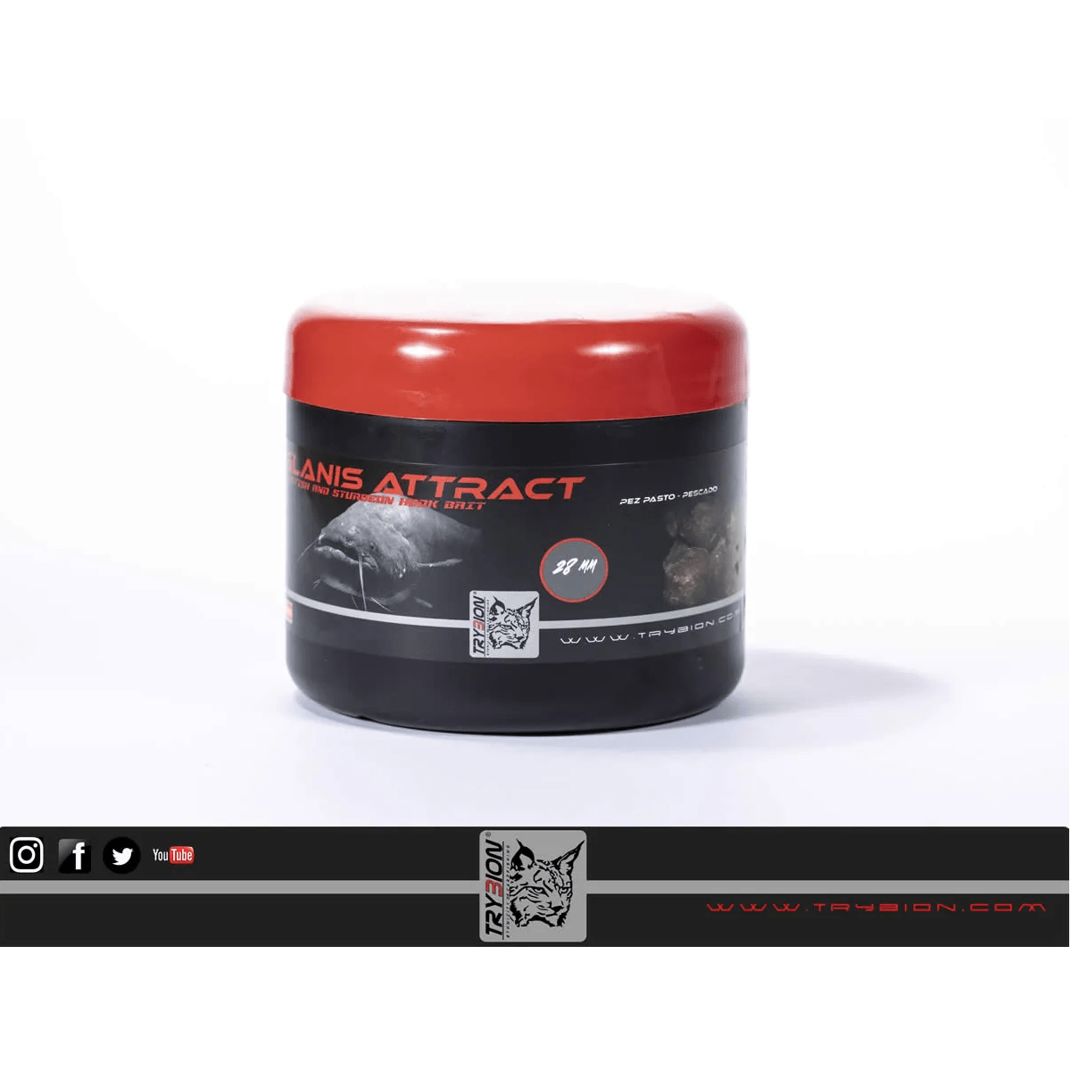 Boilies a mărcii Trybion, aromă Glanis Attract, în special pentru pescuitul la vânat mare.