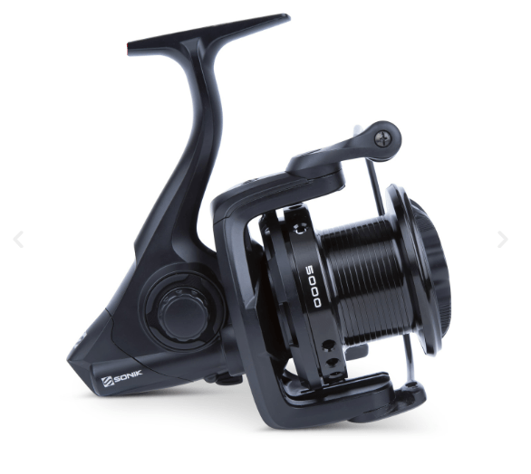 Mulineta a mărcii Sonik model Xtractor+ 5000 cu un finisaj în Culoare negru, special pentru carpfishing.