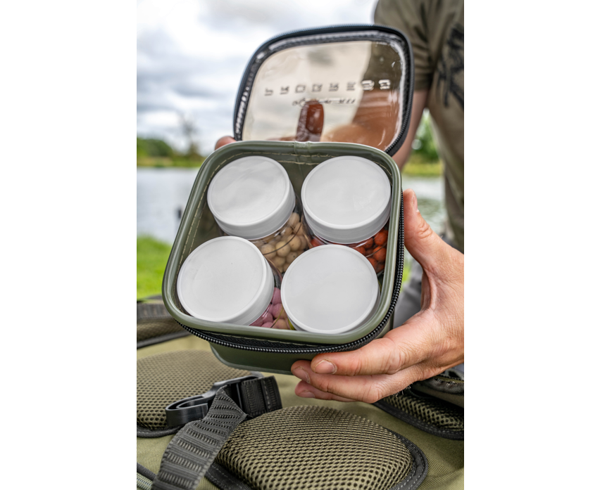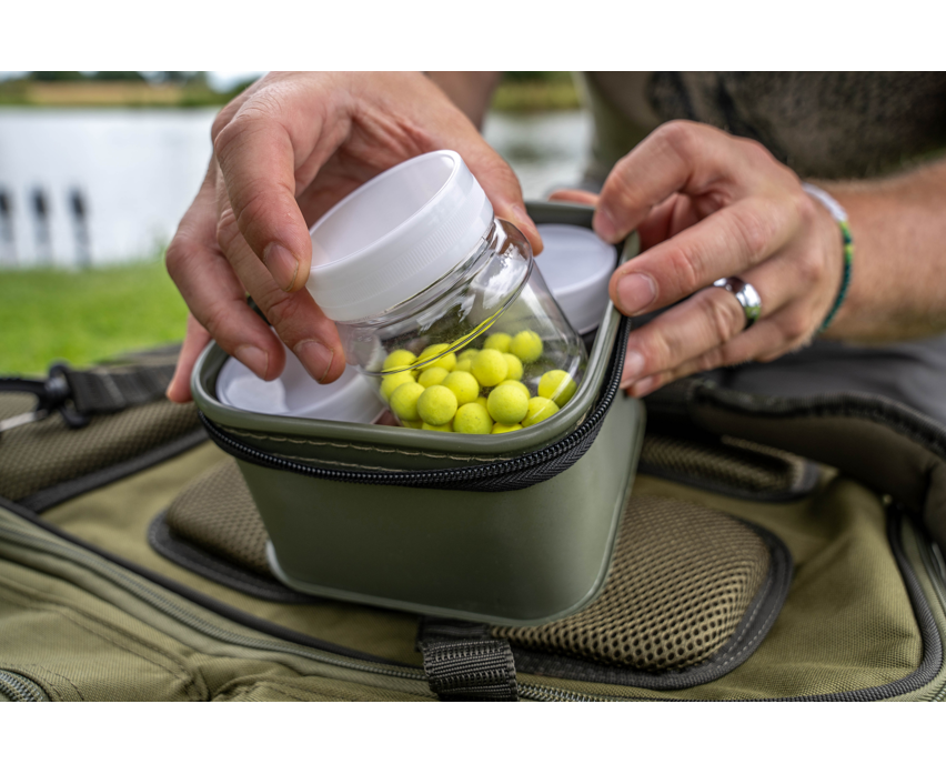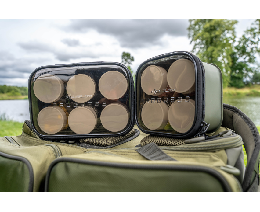 Bag pentru vasele de momeală ale mărcii Korum, model Progress Eva, la Culoare verde, concepute pentru depozitarea momelilor, sosurilor și lichidelor.
