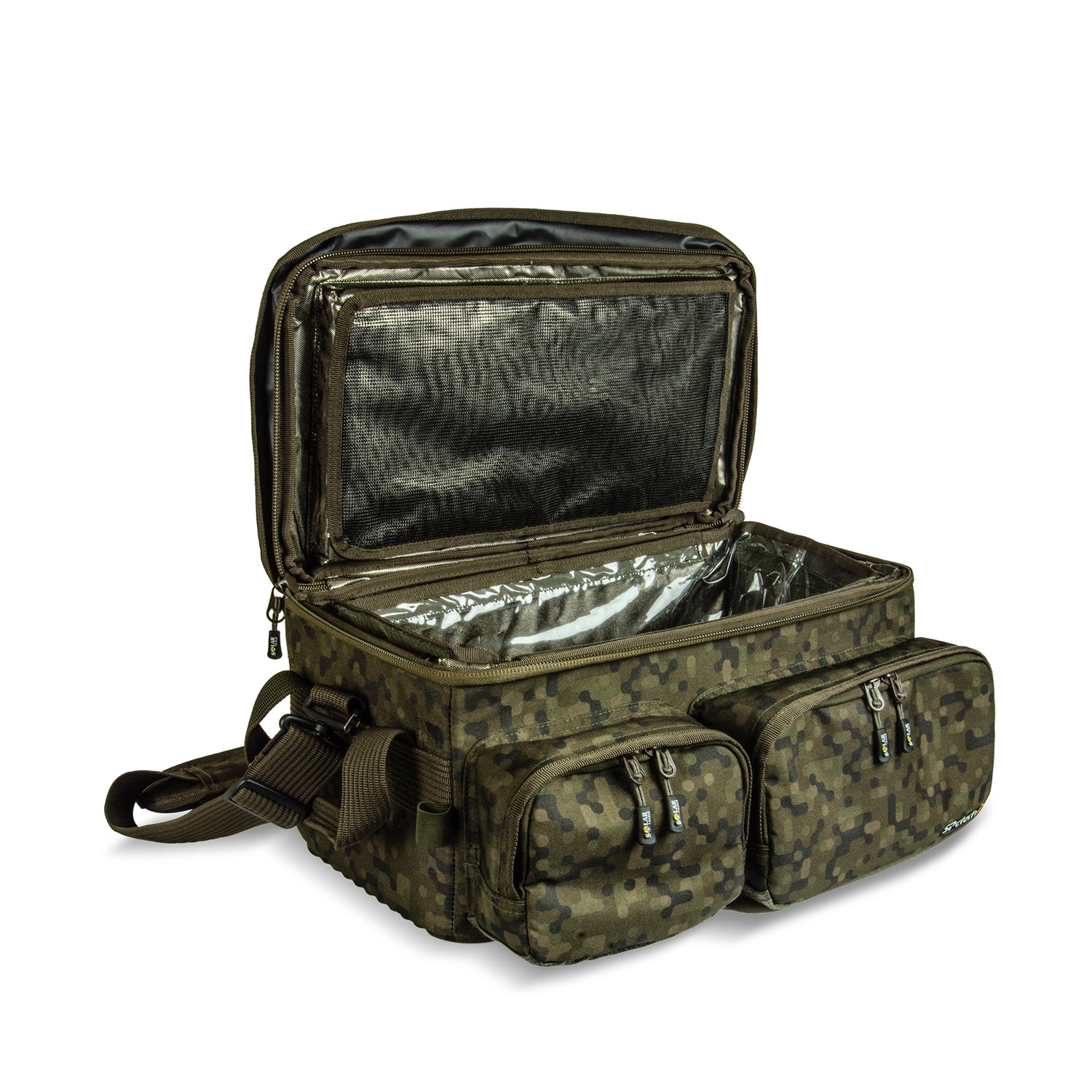 Bag Izoterme a mărcii Solar, model SP C-Tech, cu design în Culoare design camo, ideal pentru sesiunile dvs. de carpfishing.