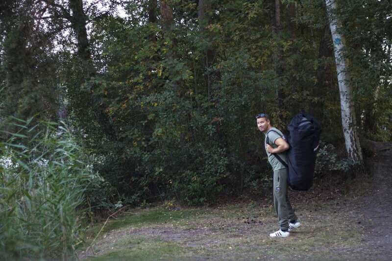 Barca compactă a mărcii Raptor model 200 rapid cu podea cu aer la culoare verde, în special pentru carpfishing. Design potrivit pentru utilizarea în ape mai mici și sesiuni rapide.