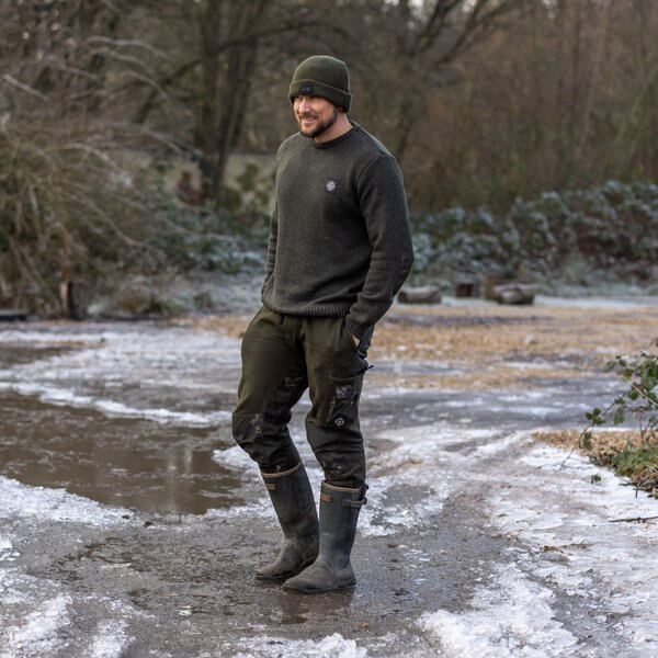 Pulover tricotat al mărcii Nash cu design Scope în culoarea verde, speciale pentru carpfishing.