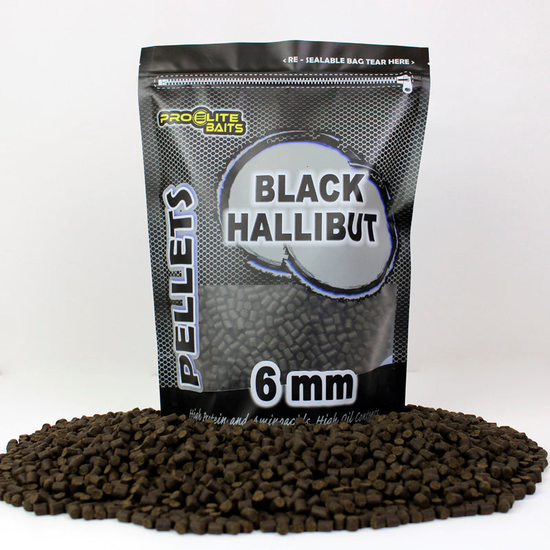 Micropelleți Negru de la 6 mm de marcă Pro Elite Baits aromă Halibut la Culoare negru, în special pentru momeli pentru carpfishing.