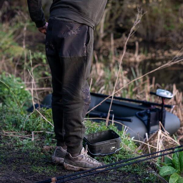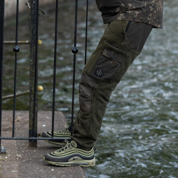 Pantaloni tip jogger marcați Nash cu design Scope HD în culori verde cu detalii detalii de camuflaj, în special pentru carpfishing.