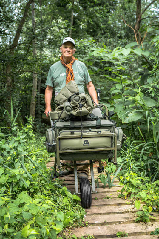 Cărucior de transport de marcă Korum model Tranziție Compactspecial pentru carpfishing.